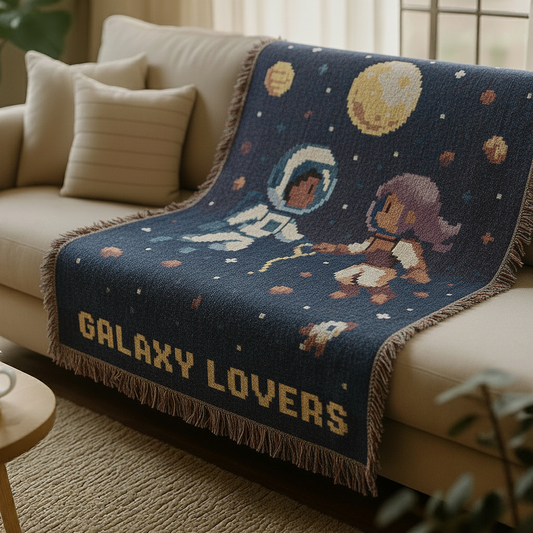 Galaxy Lovers Retro Pixel Art Woven Blanket