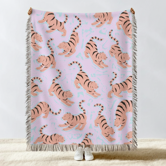 Zebra Stripe Cotton Throw Blanket Lavender and Orange
